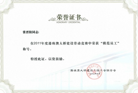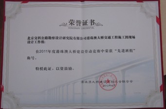 我院港珠澳大桥交通工程设计项目部集体及个人荣获2011年度港珠澳大桥建设劳动竞赛“先进班组”和“模范员工”两项表彰