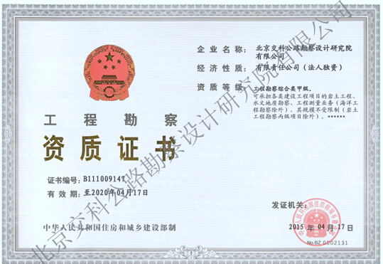 在各级领导的大力支持下,我院通过克服各种困难,终于在2015年5月6日成功领取新版工程勘察综合类甲级资质证书,有效期至2020年4月17日。