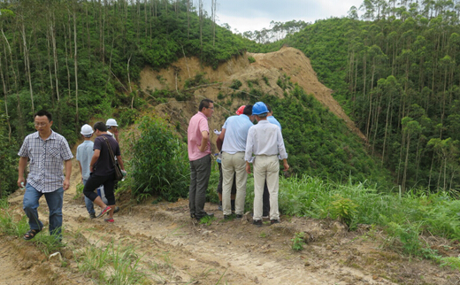 7月7日,由我院副总工程师张华带队组成的专家组来到广东韶关仁化县城口镇、同业主广东仁新高速管理处、施工单位相关负责人就TJ1标林场大桥变更路基的设计方案进行现场踏勘。