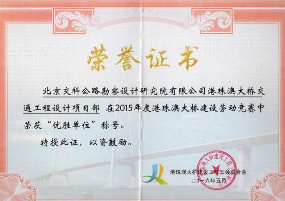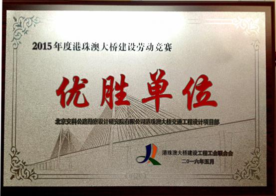 我院港珠澳设计项目部被评为“2015年度港珠澳大桥建设劳动竞赛优胜单位”