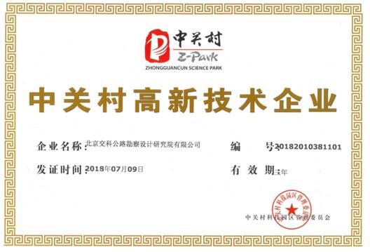 在各级领导的大力支持下,我公司中关村高新技术企业资质复核于2018年7月9日获得通过,7月20日,中关村科技园区管理委员会向我公司颁发了证书,新证书有效期为三年。中关村高新技术企业资质的获得有利于公司申报国家高新技术企业资质以及申请政府各项相关奖励资金。