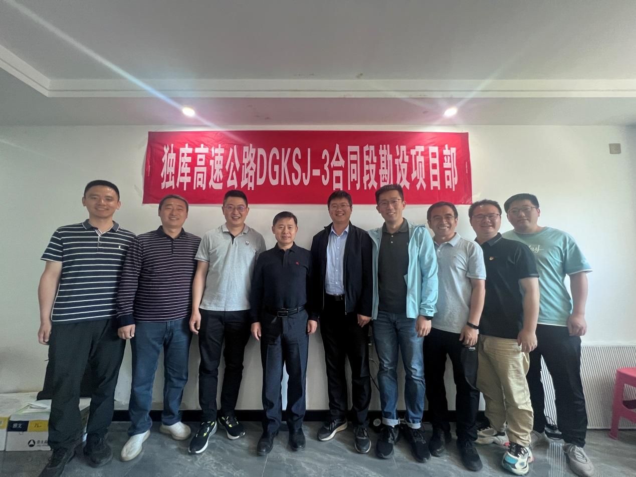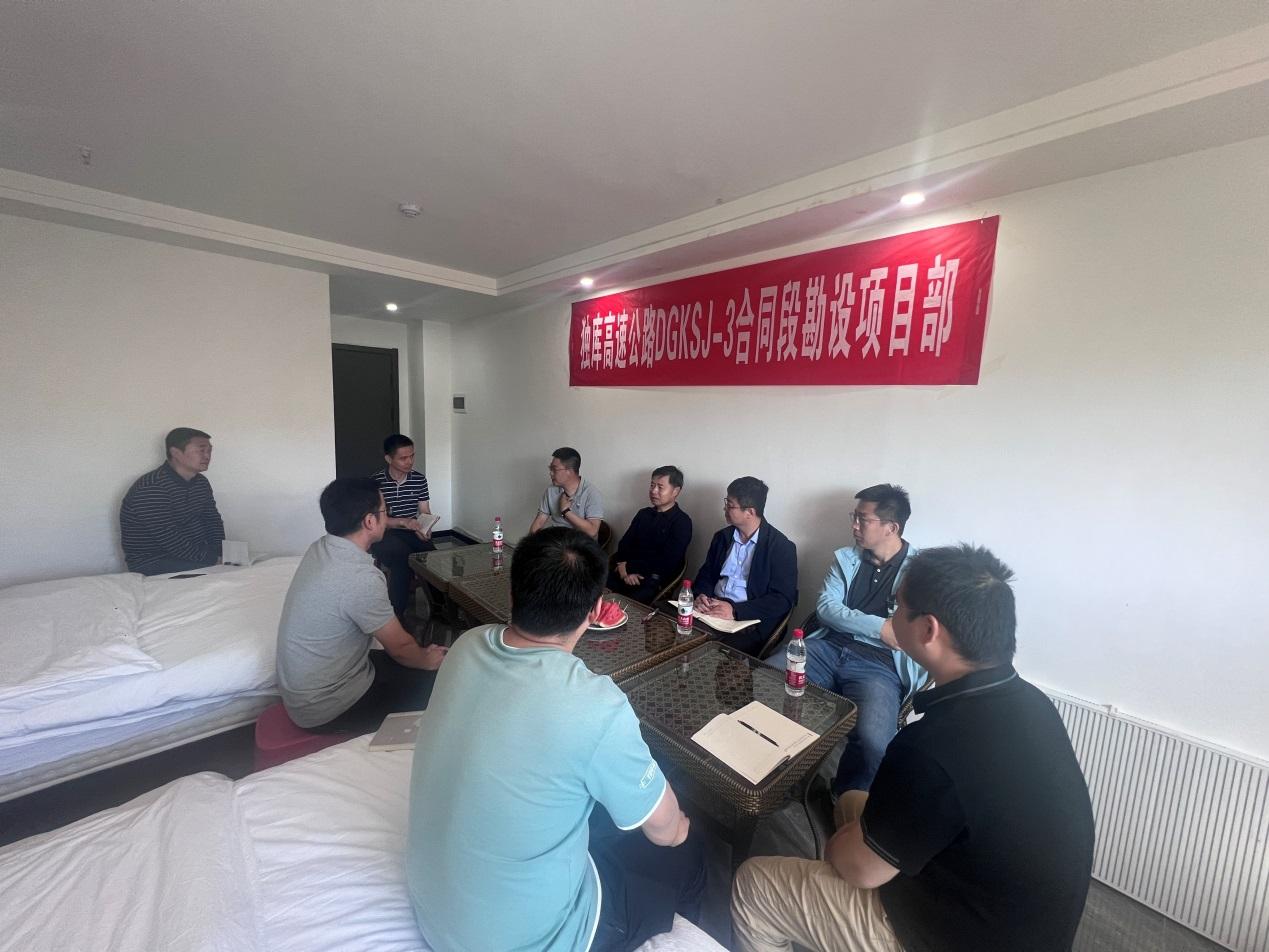 在项目驻地,朱传生书记一行详细了解了独库项目概况、勘察设计工作进展及现场人员的生产生活情况,并对项目部党建工作进行了指导。朱书记充分肯定了项目部的技术工作,对项目部员工的担当付出精神给予高度评价,同时指出,后续工作中要再接再厉,与公路院相关部门做好协同,为地方提供更加优质的技术支撑和服务。朱书记另外强调,项目现场要持续做好党建与业务融合,发挥党员先锋模范作用,让党旗飘扬在生产一线。