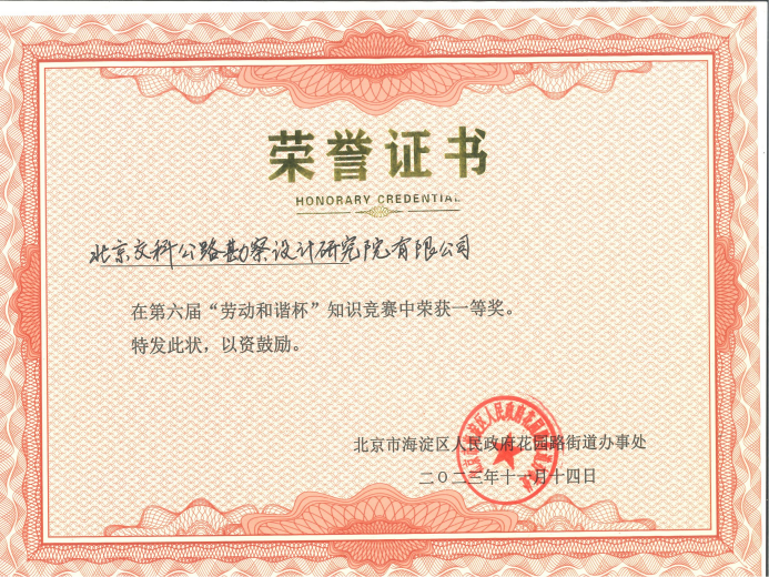 11月14日下午,设计院受邀参加花园路街道办事处组织的第六届“劳动和谐杯”知识竞赛。公司选派孙亚欣、高也雯、王梅等3人组队代表公司参赛,荣获一等奖。