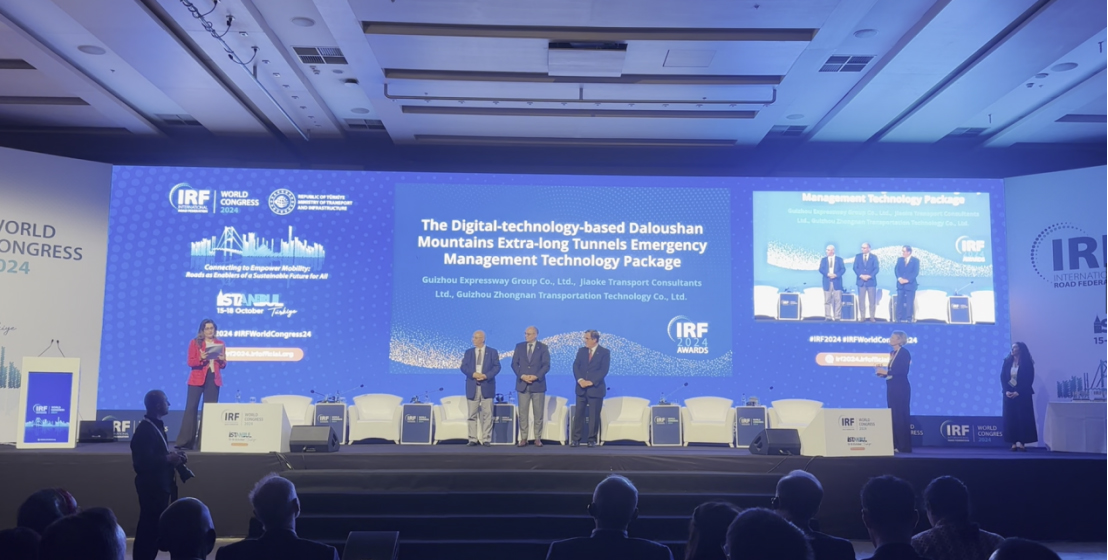 近日,2024年国际道路大会(IRF World Congress 2024)闭幕式在土耳其伊斯坦布尔举行,大会公布了2024年国际路联奖项(IRF Awards 2024)获奖单位。其中,设计院与贵州高速集团共同申报的“基于数字化的大娄山超长隧道群应急管理成套技术项目”荣获了IRF国际奖(应急管理类)。