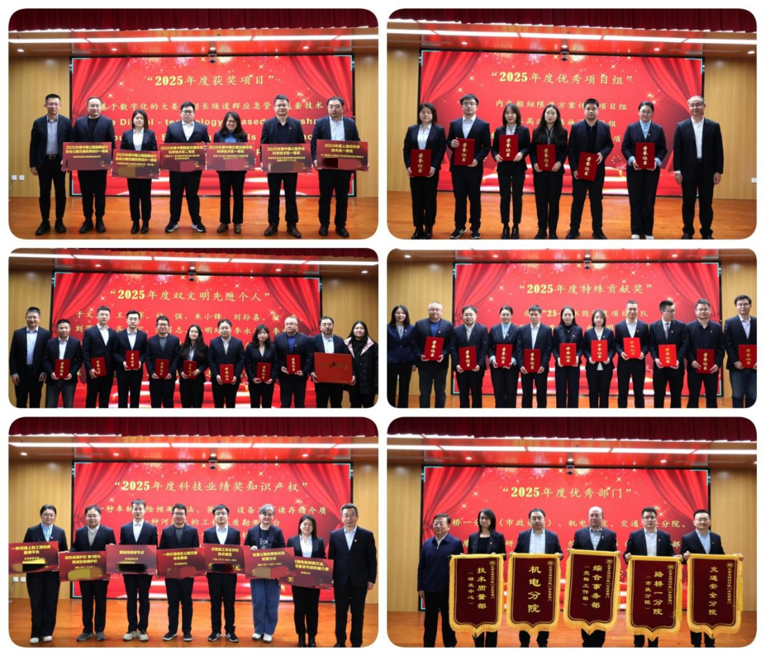 会议表彰了2025年度设计院优秀部门、双文明先进个人、优秀项目组以及科技成果奖、特殊贡献奖等获奖代表。
